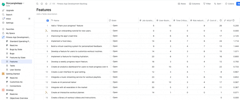 The greater the WSJF score assigned to a task, the more important it becomes in terms of priority. Once you calculate the scores for all tasks, you can sort them by value to quickly organize your backlog: