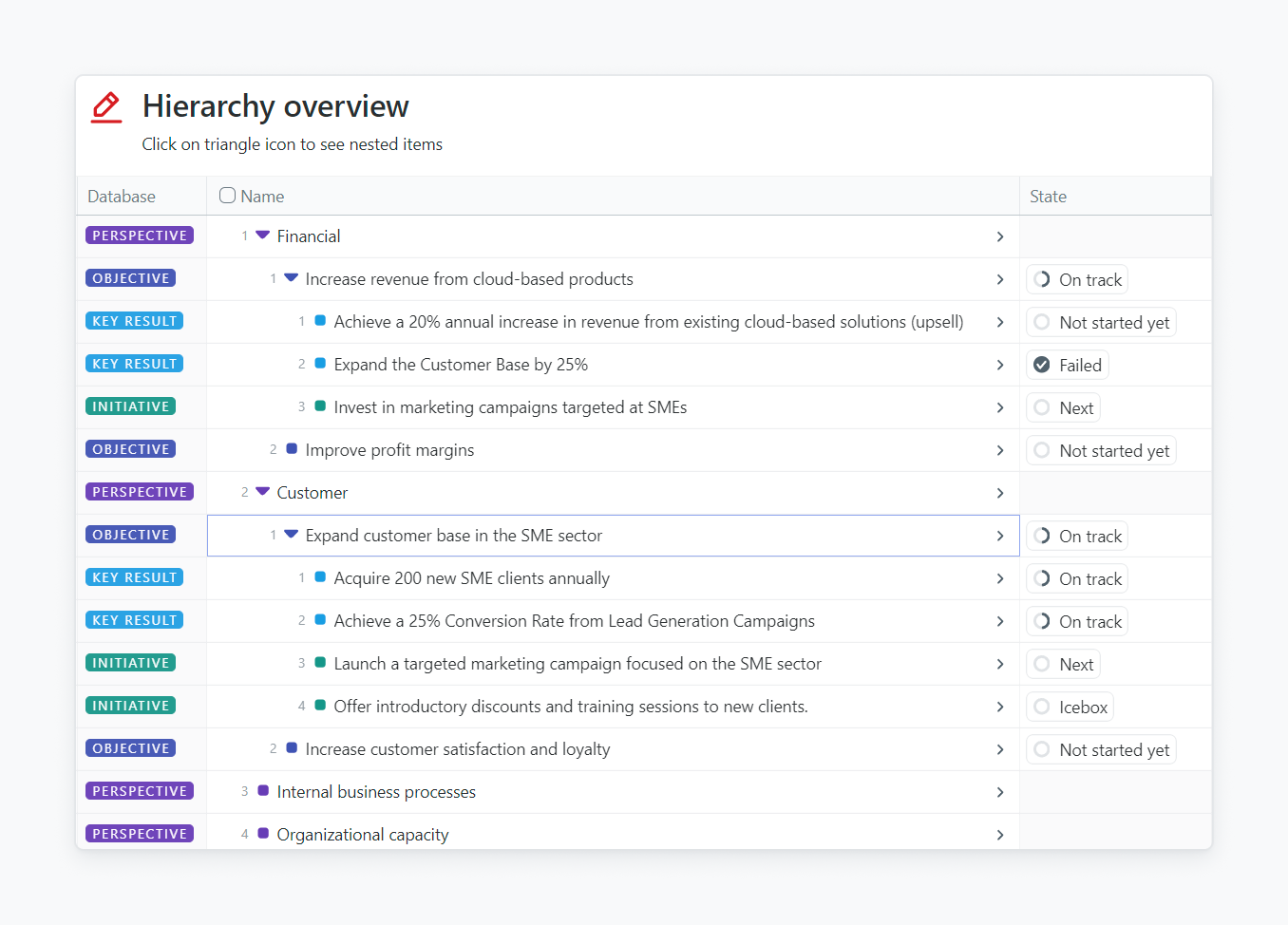 Streamline your GIST planning with Fibery's template. Set Goals, Initiatives, Strategies, and Tactics to drive business growth efficiently.