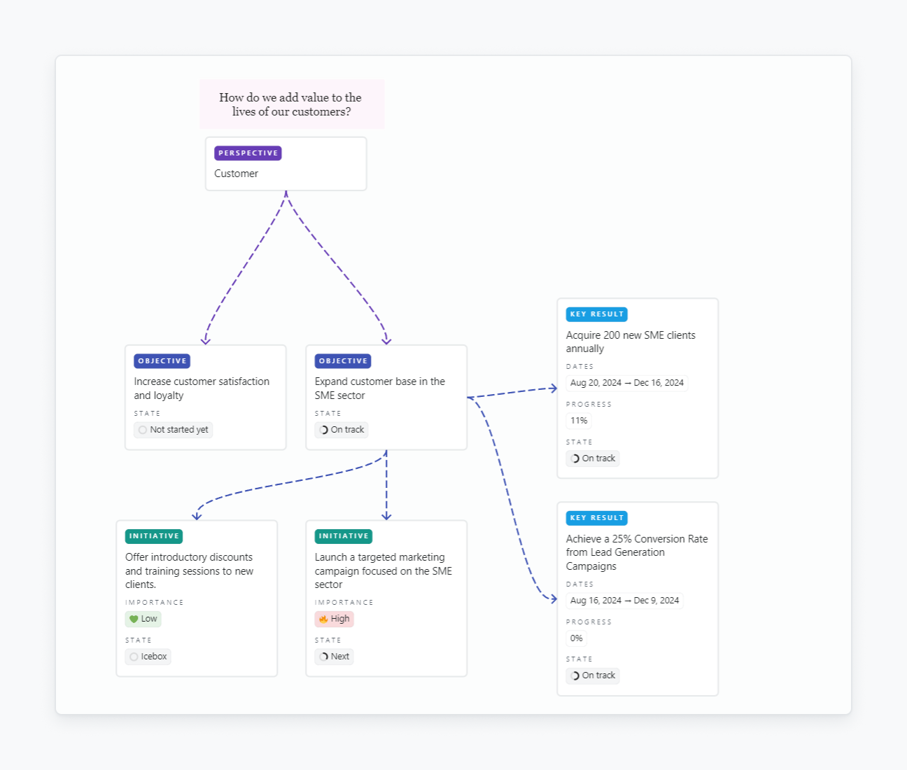 This template helps to clarify the path from high-level goals to specific actions, ensuring alignment and focus on impactful outcomes.
