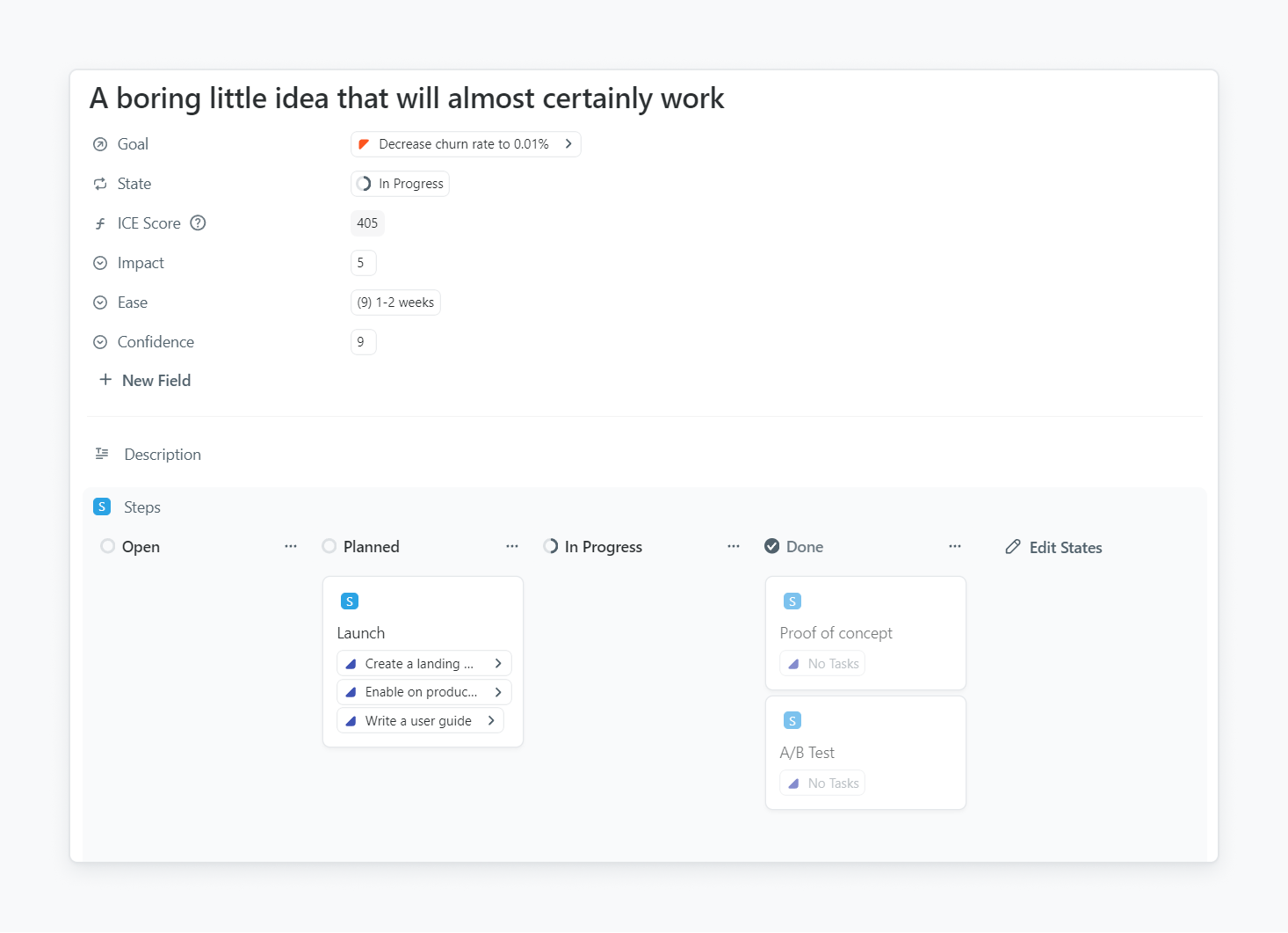 Achieve product-market fit with Fibery's template. Validate your target market, gather feedback, and iterate to create a winning product.