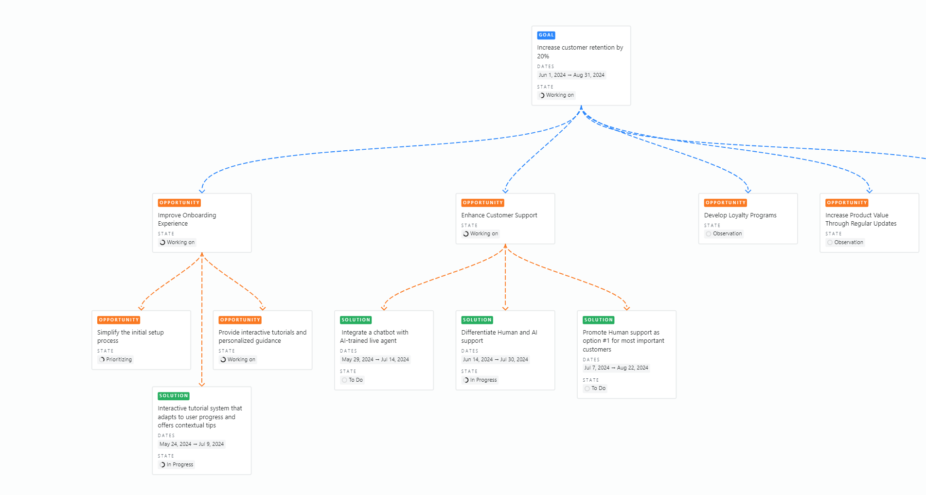 Streamline your GIST planning with Fibery's template. Set Goals, Initiatives, Strategies, and Tactics to drive business growth efficiently.